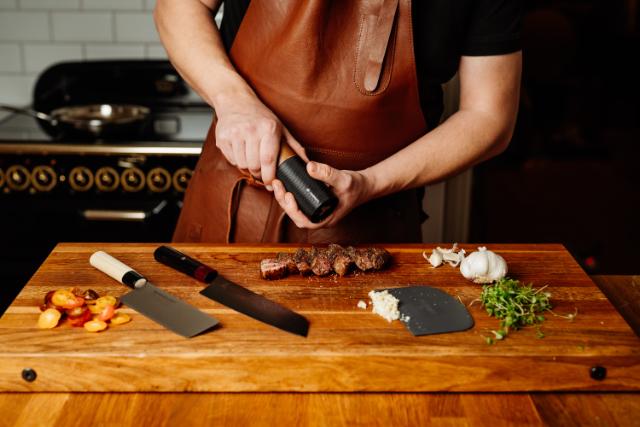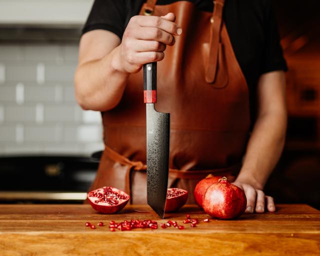 Yaxell Rei både ser ut og presterer som en superstjerne. Serien kombinerer 69 lag damaskusstål med et svart DLC-belegg. Dette gir kniven et tøft ytre og et blad som holder seg skarpt ekstra lenge. Den sylskarpe eggen gjør jobben enkel – uansett om du finhakker, kutter eller bare vil føle deg som en samurai på kjøkkenet.