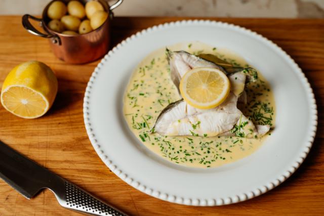 Er du lei av fet julemat? Øyvind tilbereder kveite på den tradisjonelle måten. Serveres med nypoteter og Sandefjordsmør