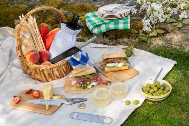 Mat som kan forberedes på forhånd er god piknikmat. Men det er alltid noe som må skjæres på stedet. Kanskje litt ost, frukt eller grønnsaker? Da er det perfekt med en universalkniv fra Global!