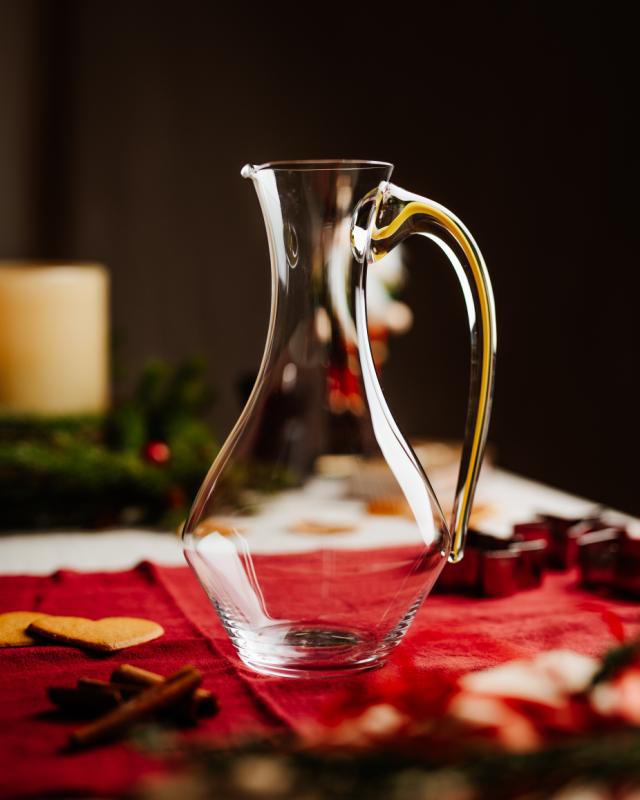 Har du vært virkelig snill i år? Da bør du sette en vinkaraffel fra Riedel på ønskelisten. Denne karaffelen fra Cabernet-serien har et munnblåst håndtak i en frisk og vakker gulfarge.