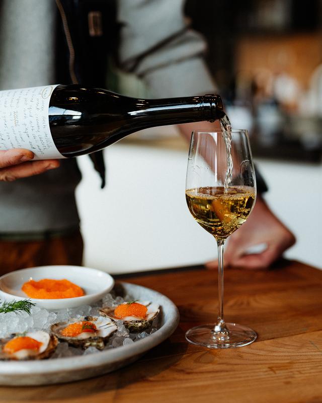 – Østers og bobler er det klassiske valget. Her har vi også litt sødme og den lett grillede tonen i pærene. Ikke et dårlig valg.