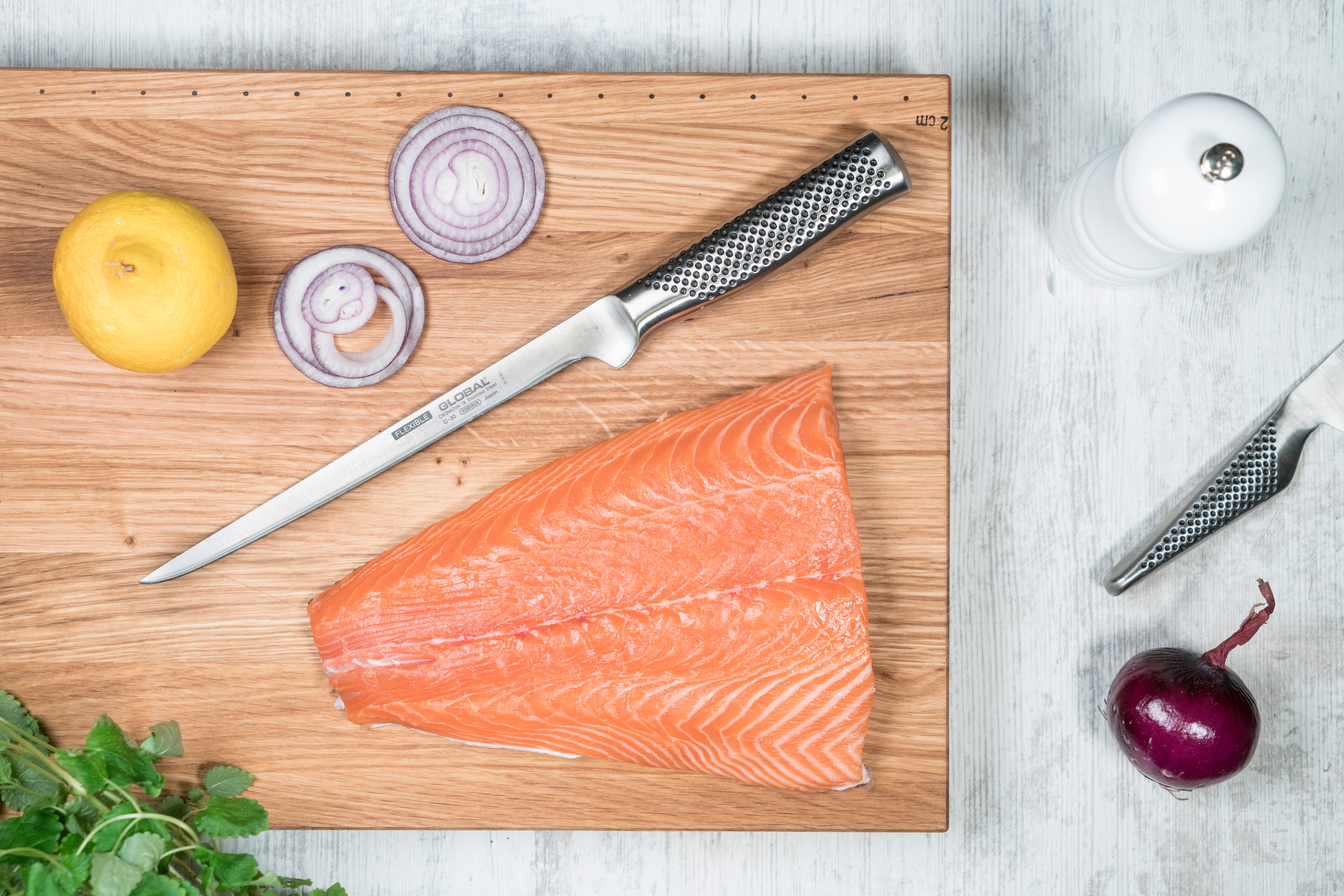 Fleksibel fileteringskniv fra Global, 21 cm.