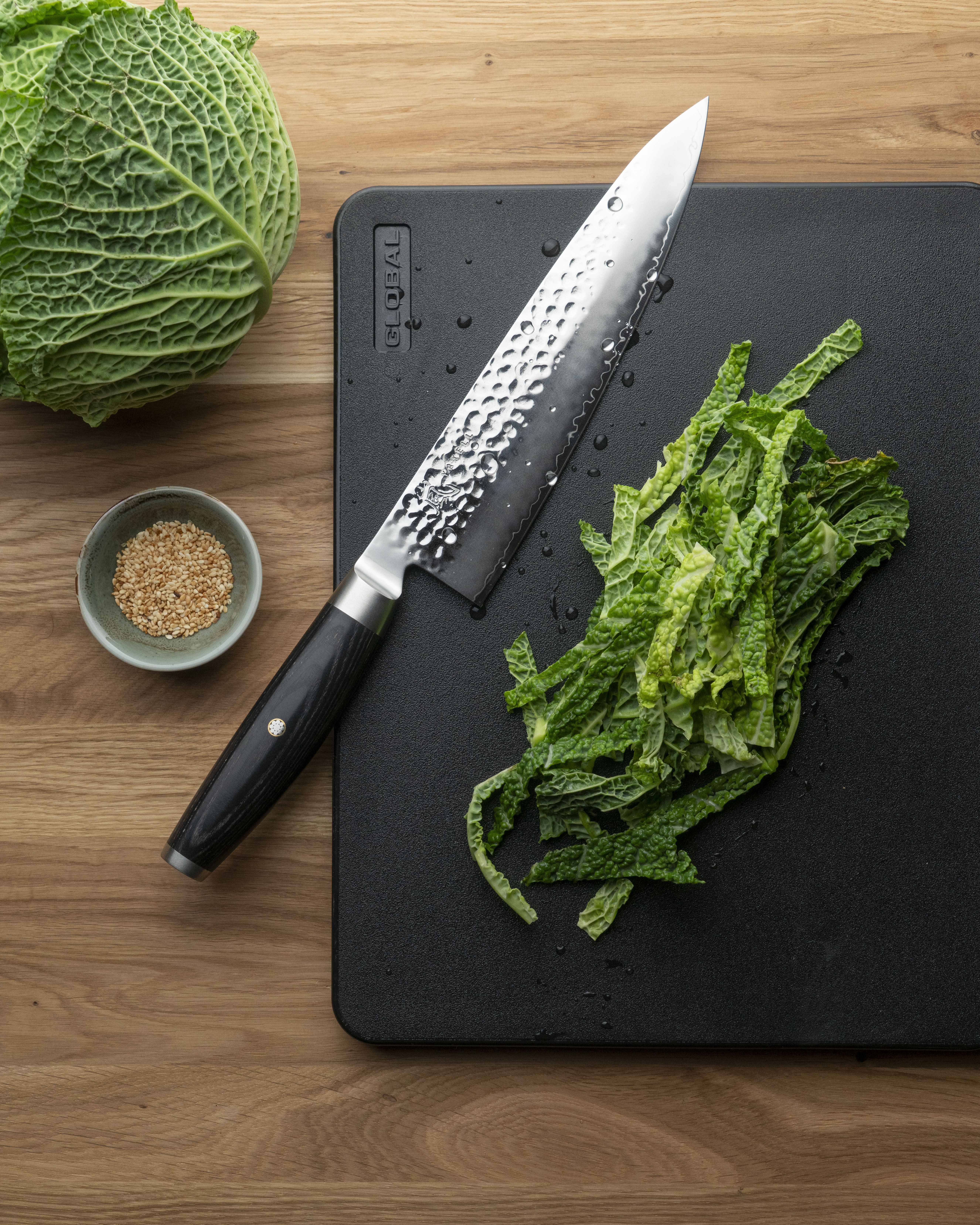 Tips: Unngå å skrape av skjærebrettet med eggen, bruk heller baksiden for ikke å gjøre kniven sløv.